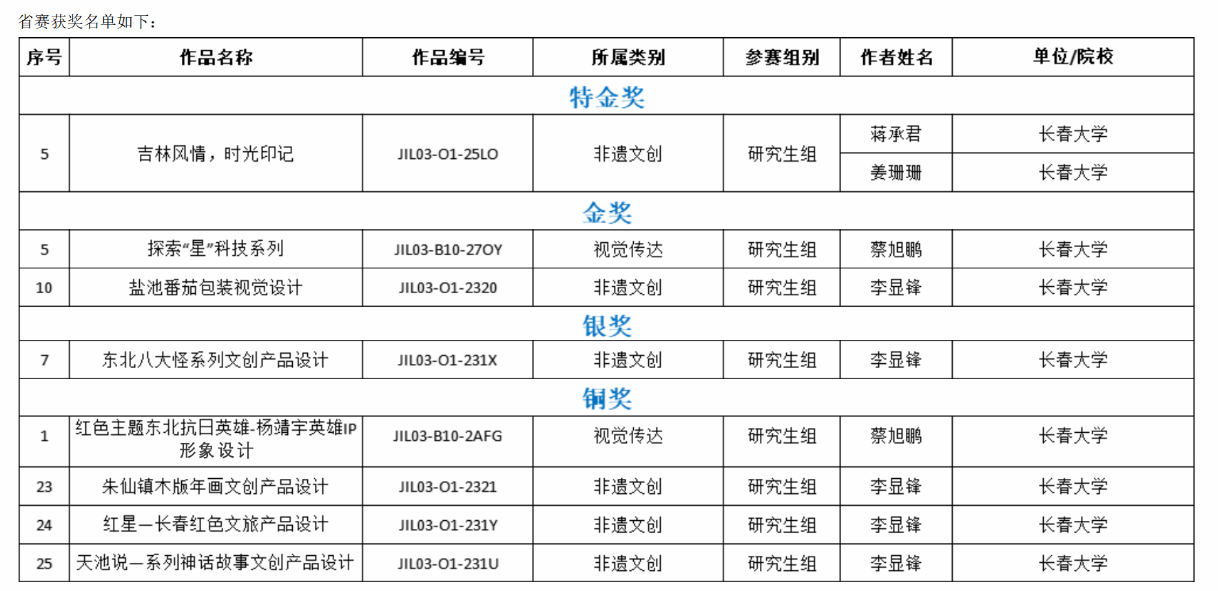 近日,由工业和信息化部国际经济技术合作中心批复举办的第五届东方创意之星创新设计大赛(吉林赛区)省赛获奖名单正式公布,特殊教育学院研究生荣获八个奖项,其中特金奖1项,金奖2项,银奖1项,铜奖4项;特殊教育学院教师计承荣获优秀指导教师奖;我校荣获优秀组织单位奖。