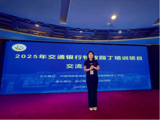 为深入贯彻党的二十大“强化特殊教育普惠发展”重要部署,进一步加强全国特殊教育师资队伍建设、提升教师专业化育人水平,9月22-26日,我院教师杜艳飞参加了由教育部教师工作司、中国残联教就部在杭州举办的2025年度“交通银行特教园丁培训项目”残疾人职业教育班。在培训过程中,聆听了多个专家在特殊教育前沿理论、中高职一体化发展路径、残疾人职业能力培养体系构建等方面的讲座,到杭州市杨绫子学校、杭州市紫云实验学校实地观摩,近距离学习两校在残疾人职业能力培养、融合教育实践等方面的先进经验,并在“特殊教育工作经验”的主题分享中介绍了我院高等融合教育的实践经验。