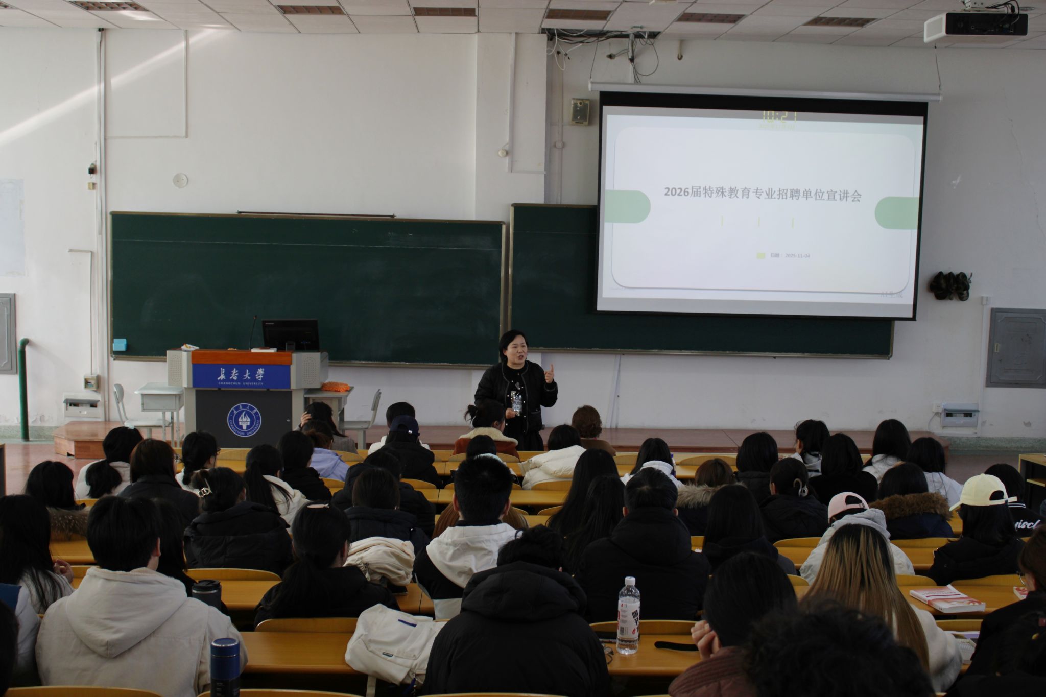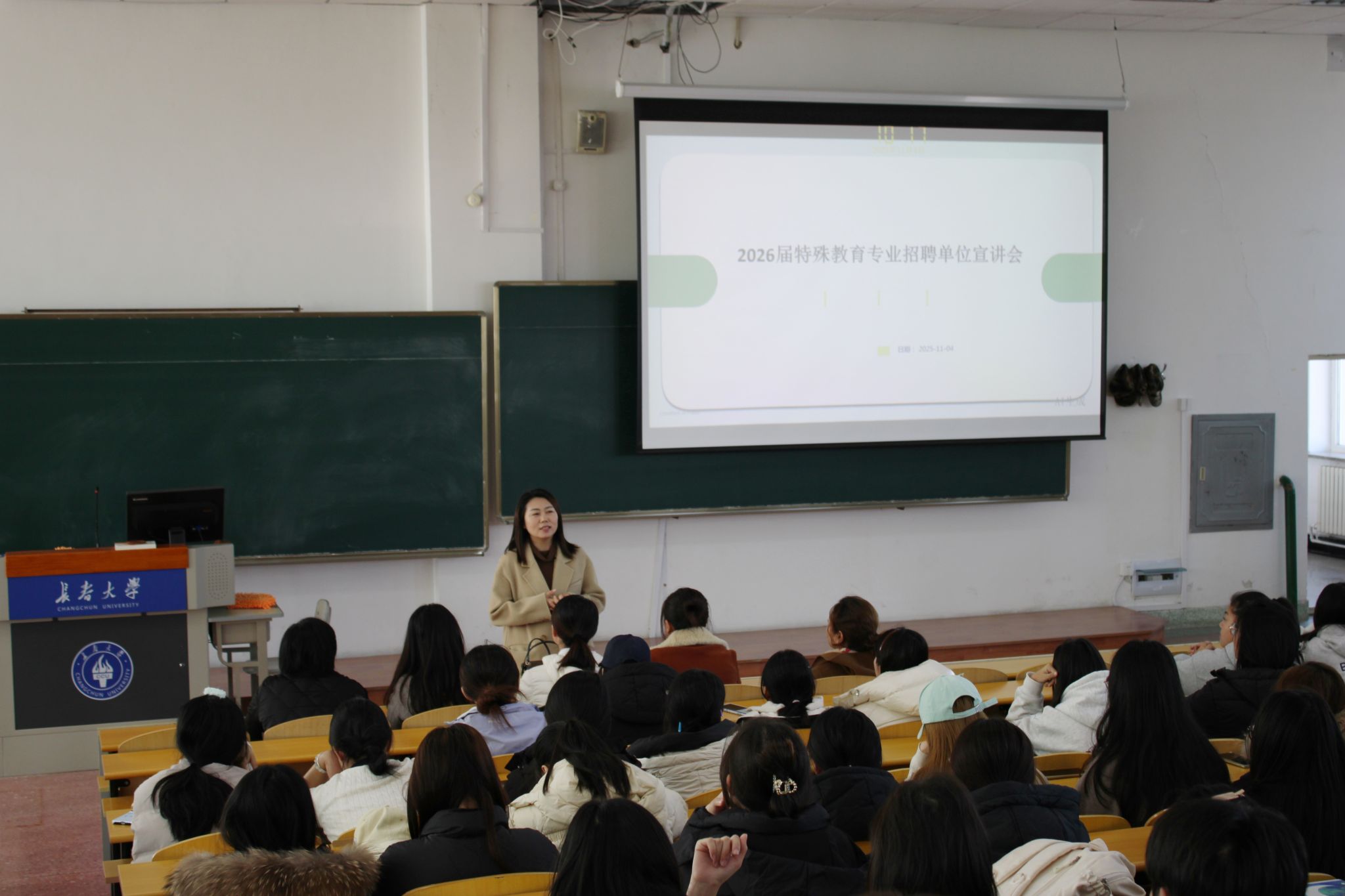 为扎实推进我院2026届特殊教育专业毕业生就业工作,精准搭建校企人才对接桥梁,切实拓宽毕业生就业渠道,11月4日上午,我院举办2026届特殊教育专业毕业生专场宣讲与招聘会。本次招聘会精心邀约长春市花儿朵朵融合幼儿园、长春新区大象幼儿园、长春市高新区吉幼优佳幼儿园、咪吖早教咨询培训有限公司等多家深耕特殊教育及早教领域的优质用人单位参会,为毕业生带来行业前沿动态与多元化就业选择。