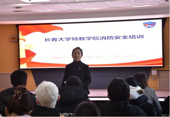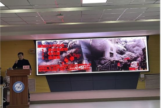 随后,吉林省宏宇消防宣传教育中心侯东坡老师为师生带来了干货满满的消防安全守护等知识讲座。侯老师结合近年来国内典型火灾惨案实例,深刻剖析了日常生活和工作中容易忽视的安全隐患及不良行为,详细讲解了火灾发生时的自救逃生技巧、初期火灾扑救方法,重点指导教师在火灾应急处置中应承担的职责和采取的关键措施,让师生们对消防安全知识有了更直观、更深刻的理解。