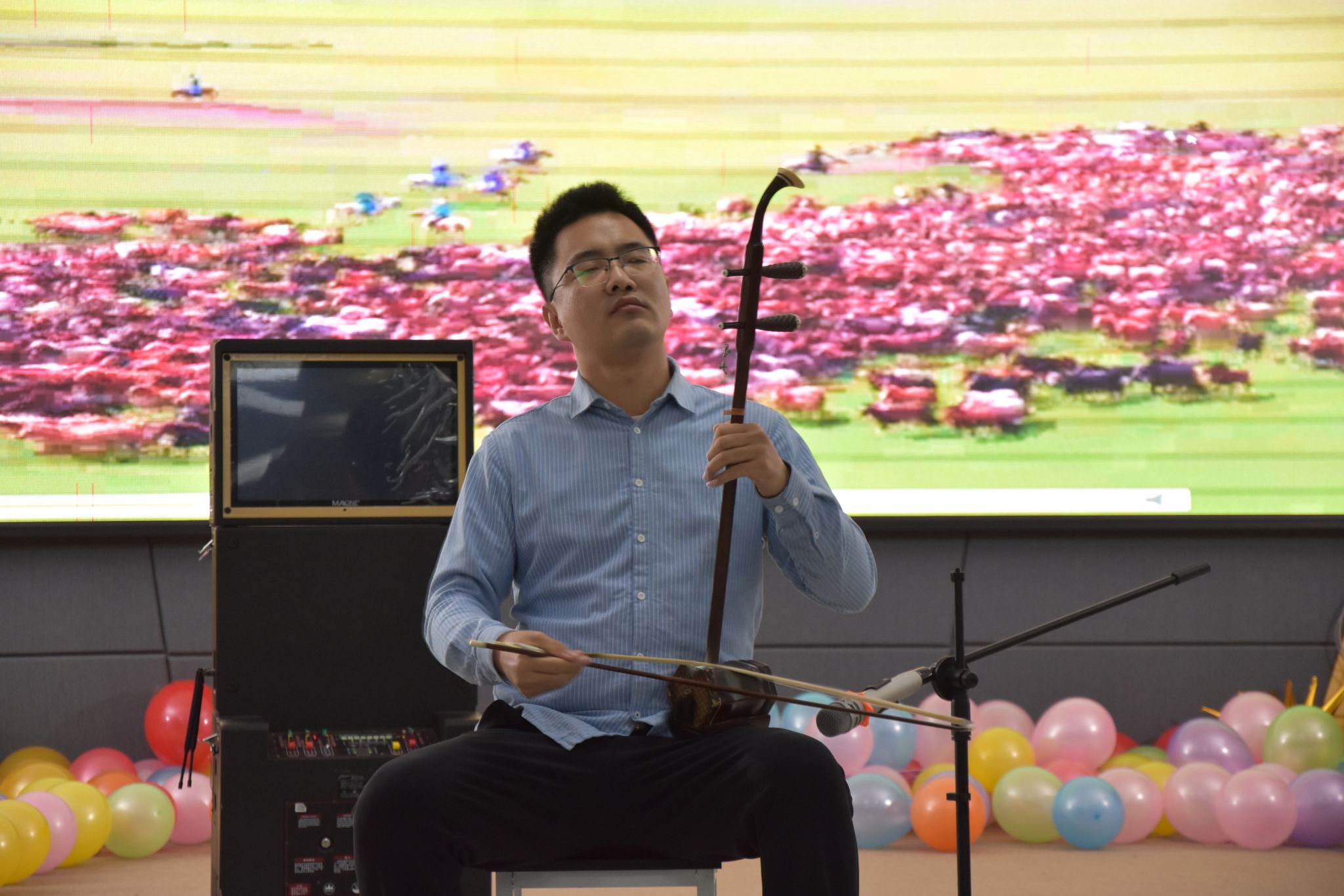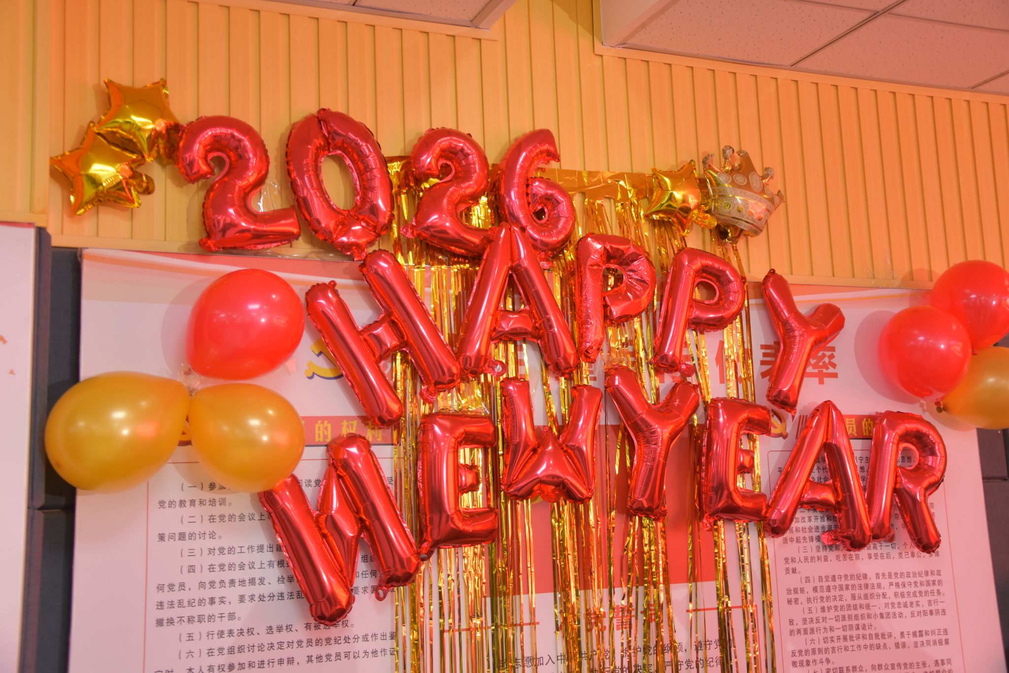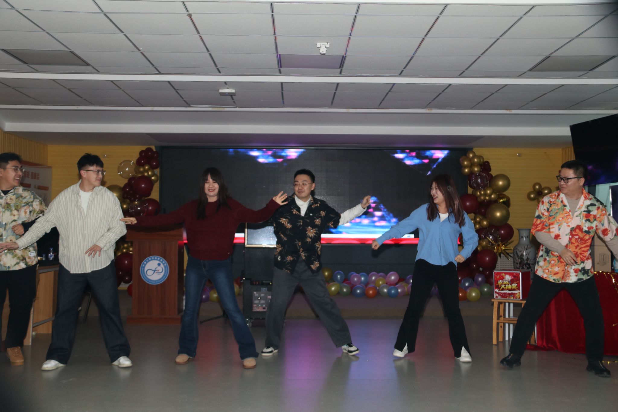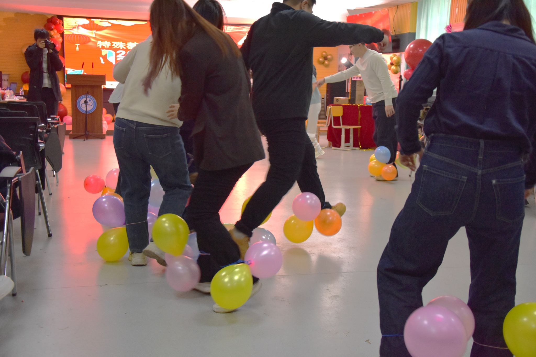 新年茶话会由学院工会精心筹备,以“我爱你中国”为红色主题,文艺节目精彩纷呈,青年教师开场舞活力四射,《游击队之歌》伴着教师打的节拍,由小合唱变成了大合唱;朗诵《融合新生2026,我们这样出发》传递责任温情,二胡独奏与脱口秀妙趣横生。“尖叫鸡”“抢凳子”“踩气球”等趣味游戏与抽奖环节将氛围推向高潮,老师们踊跃参与,欢声笑语不断。活动尾声,全体教职工拍摄“全家福”定格温馨瞬间,茶话会在新春祝福中落幕。