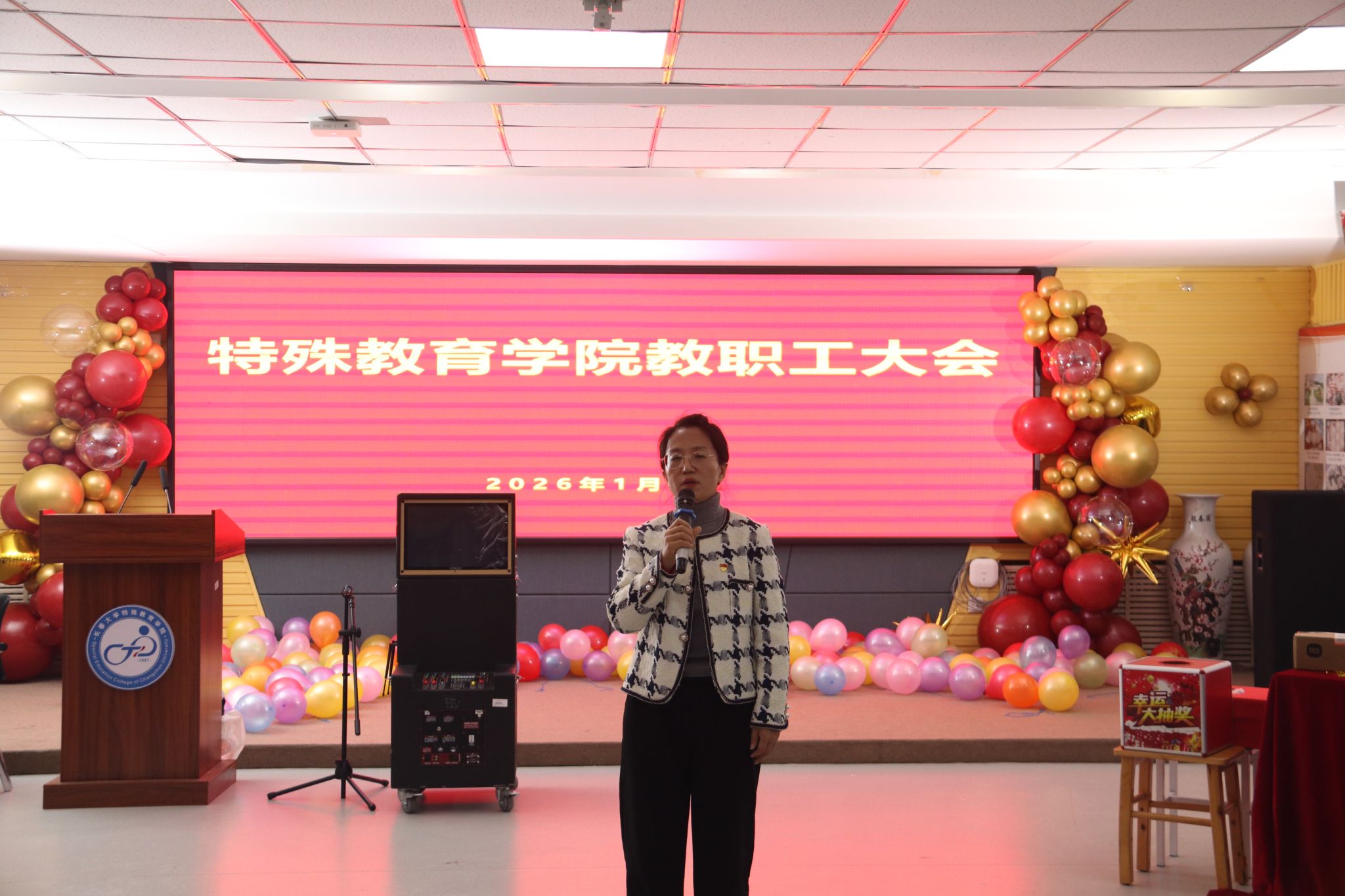 近日,长春大学特殊教育学院举行2025年度总结会暨新年茶话会。这既是对2025年工作的全面复盘,也是新班子成员到任后的首次全院大会,80余名教职工齐聚一堂,在温情与奋进中迎接新征程。