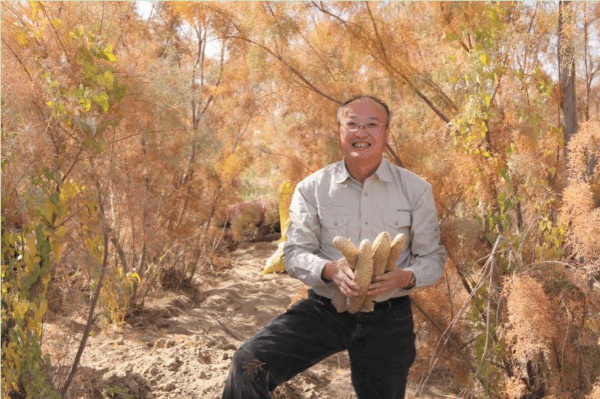 随着种植技术的不断成熟和标准种植规范的建立,肉苁蓉产业逐渐发展壮大。从最初的小规模实践到大规模推广,从承接国家科技惠民计划重大项目,到为和田地区和阿拉善盟的农牧民提供技术支持和培训,屠鹏飞和他的团队付出了巨大的努力。30载斗转星移、6000平方公里的黄沙大漠见证了肉苁蓉产业的崛起。如今,这条年产值高达200亿元的产业链已经带动了沙区20万百姓脱贫致富。2016年,屠鹏飞荣获首届“全国脱贫攻坚奖”创新奖;2023年,荣获中国中药协会“致敬—中药材产业突出贡献人物”。